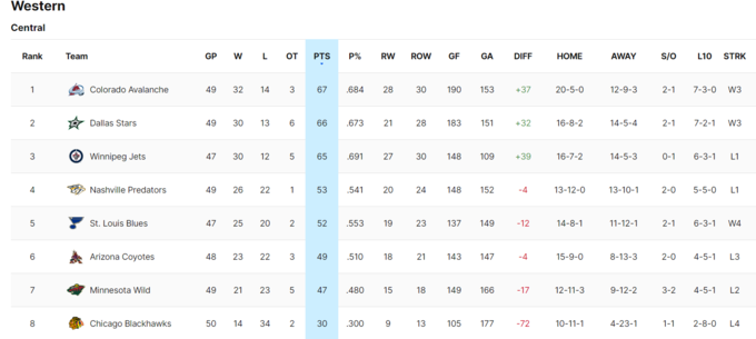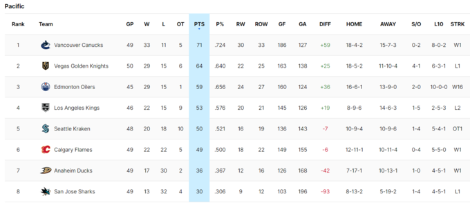 На Заході лідером є Ванкувер, який набрав 71 пункт – тільки Кенакс та Бостон вже зуміли дістатися до позначки у 70+ очок у сезоні.
