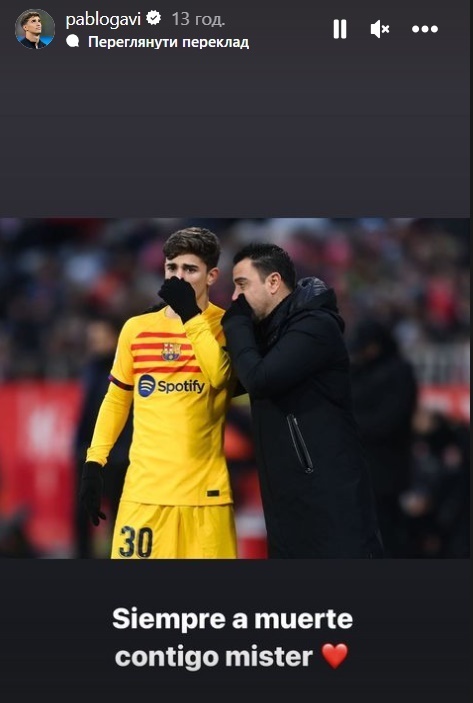 «Завжди з вами до самої смерті, тренере», – написав Гаві в сторіз інстаграма.