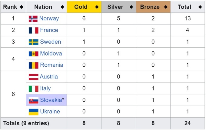 Таким чином, збірна України завершила чемпіонат Європи на шостому місці в медальному заліку, яке наша команда розділила з Австрією, Італією та господарями турніру, збірною Словаччини.