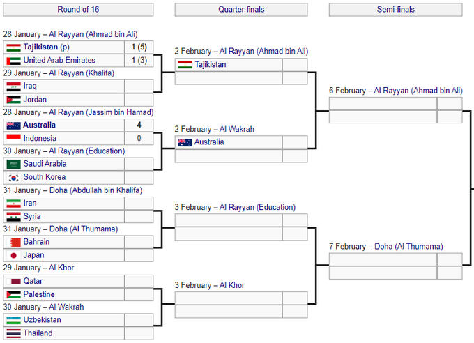 29 січня у Катарі триває стадія плей-оф Кубка Азії з футболу.