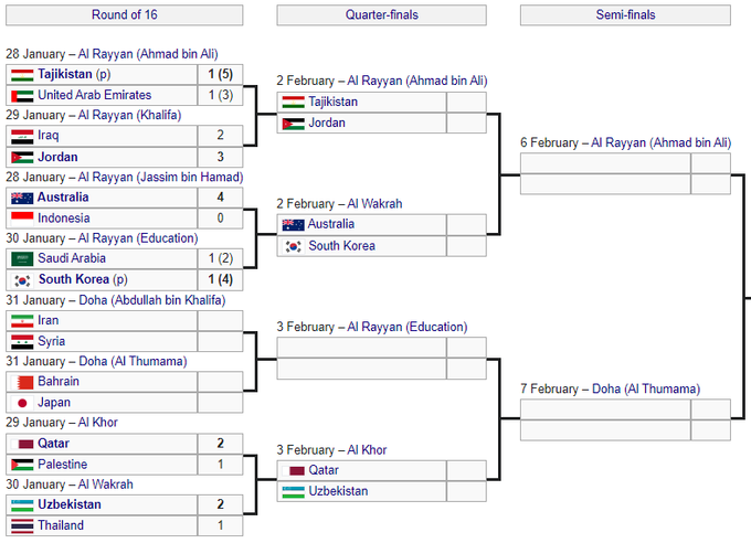 У 1/4 фіналу Кубка Азії Південна Корея зіграє зі збірною Австралії, яка розгромила Індонезію (4:0).