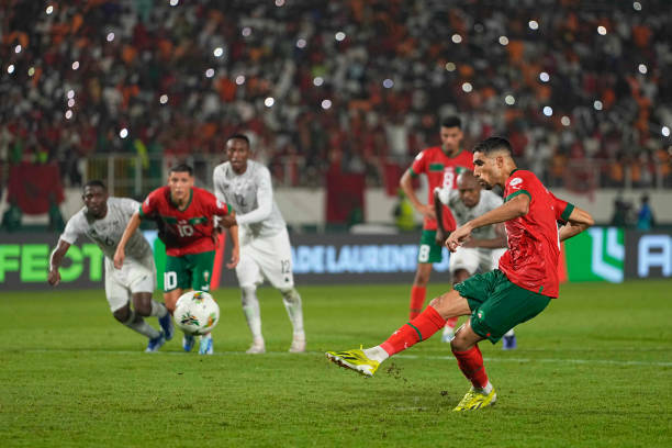 На 84-й хвилині захисник Марокко Ашраф Хакімі не реалізував пенальті, м'яч влучив у перекладину.