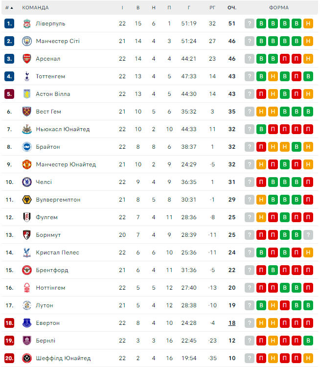 Турнірна таблиця АПЛ
