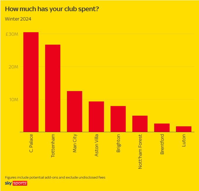 А головним марнотратом виявився «Крістал Пелас», якому, мабуть, дуже не хочеться вперше за багато років опинитися у Чемпіоншипі. Клуб витратив 30,5 мільйонів фунтів на хавбека Адама Вортона та захисника Даніеля Муньоса.