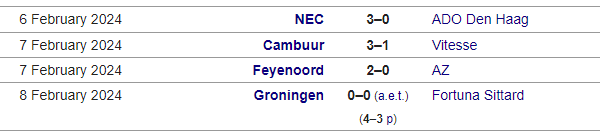 Увечері 8 лютого в останньому матчі 1/4 фіналу Гронінген у серії пенальті обіграв Фортуну із Сіттарда (0:0, пен. 4:3).
