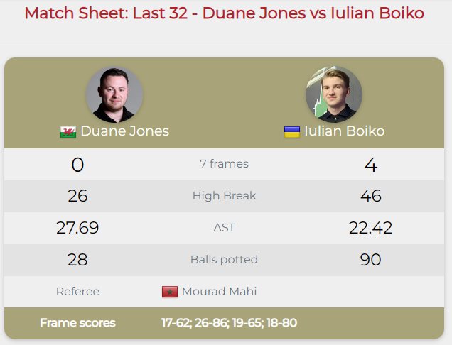 Вечірній поєдинок 1/16 фіналу проти Дуейна Джонса з Уельсу склався для Юліана дуже легко – суха перемога 4:0.