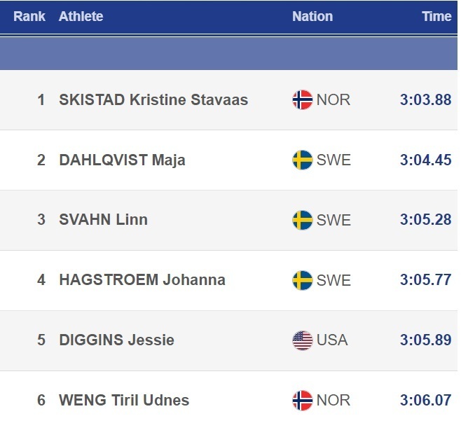 У жінок норвежка Крістін Шістад перервала переможну серію Лінн Сван, яка фінішувала третьою. Друге місце – в іншої шведки, Майї Дальквіст.