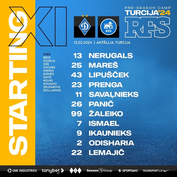 У понеділок, 12-го лютого, відбудеться товариський матч, у якому змагатимуться «Динамо» Київ і латвійський РФШ. Матч пройде в Белеку (Туреччина), на полі стадіону «Kaya Palazzo», початок о 16:00.