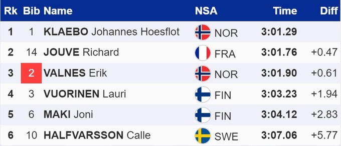 Норвезький лижник Йоханнес Клебо виграв спринт класикою на етапі Кубка світу в канадському Кенморі. У фіналі він випередив француза Рішара Жува і партнера по команді Еріка Вальнеша.
