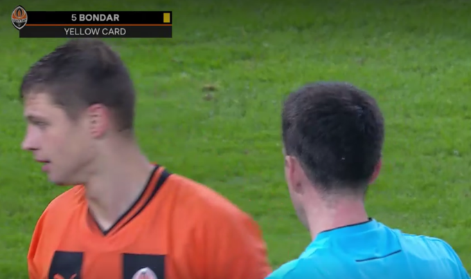 Наприкінці першого матчу плей-офф Ліги Європи проти Марселя попередження отримав захисник Шахтаря Валерій Бондар. Вже на 95-й хвилині за рахунку 2:2 гравець грубо збив суперника.