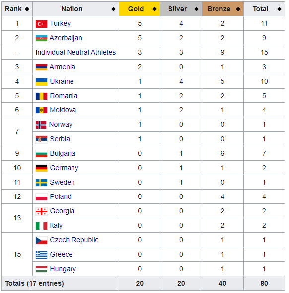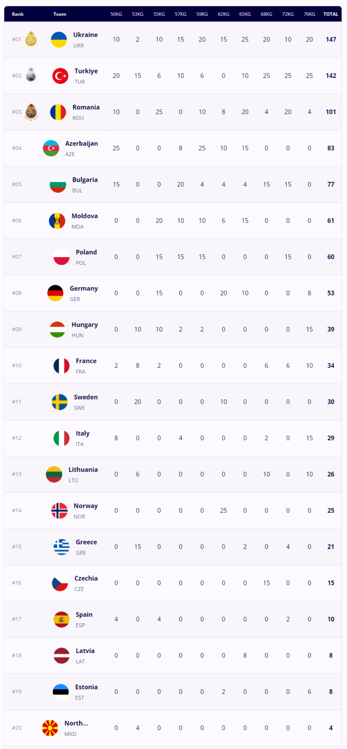 Медальний залік ЧЄ-2024 з боротьби (після греко-римської та жіночої боротьби)
