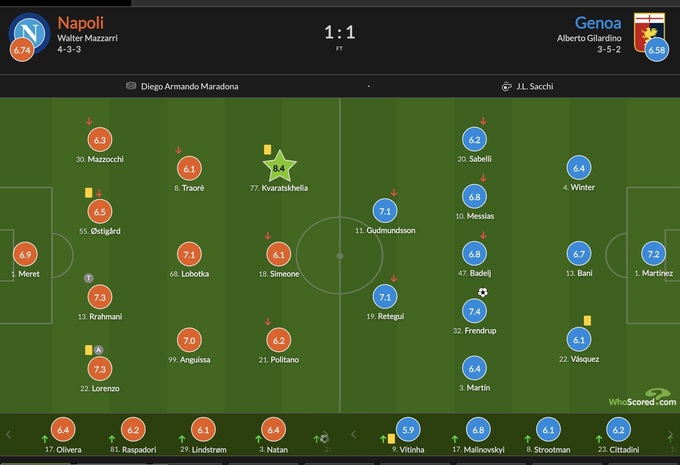 Оцінки матчу Наполі – Дженоа від WhoScored