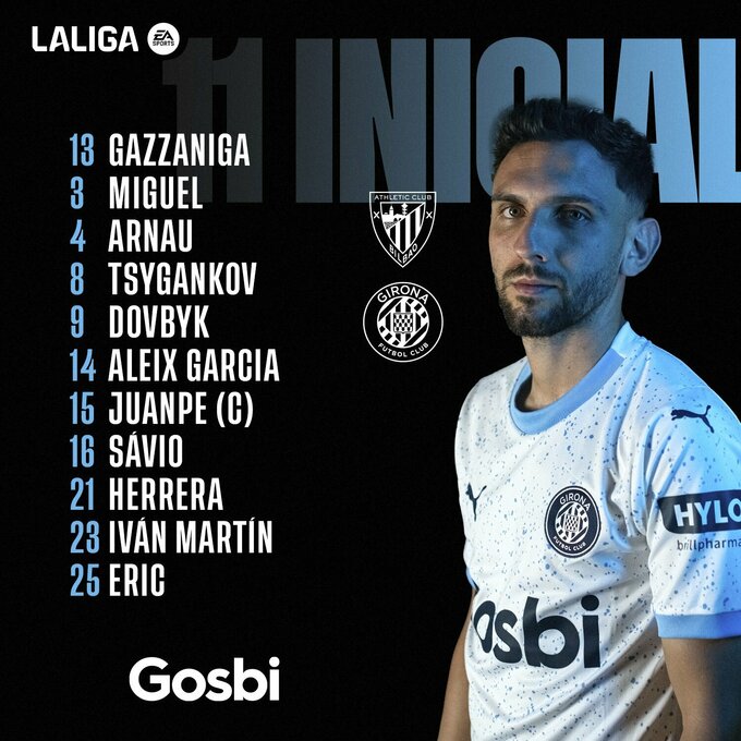 «Жирона»: Гассаніга – Гутьєррес, Хуанпе, Е. Гарсія, Мартінес (Валері, 74) – А. Гарсія, Еррера (Стуані, 89) – Савіо, Мартін (Порту, 74), Циганков (Соліс, 88) – Довбик.