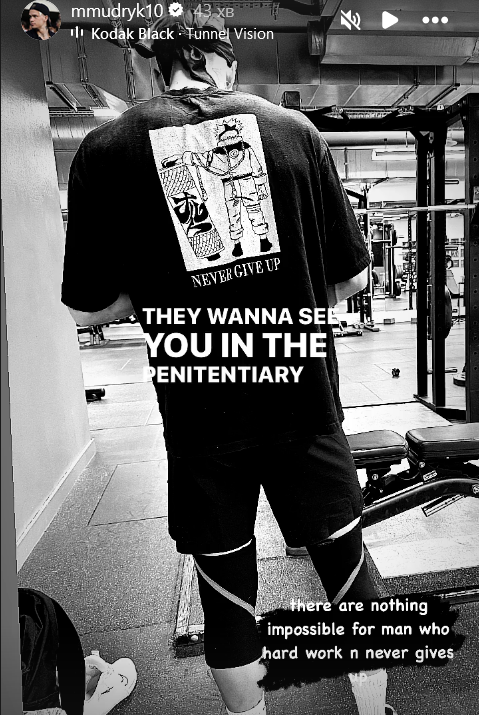 Ніколи не здавайся. Мудрик запостив мотиваційне фото зі спортзалу