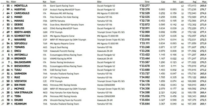 Добре провів тести також єдиний райдер єдиної приватної команди на байку MV Agusta Motozoo Racing Федеріко Карікасуло. У першій сесії він став третім після Монтелли та Адріана Уертаса із заводської програми Дукаті, а у другій – другим. Третім у другій сесії став Стефано Манці із заводської програми Ямаха.