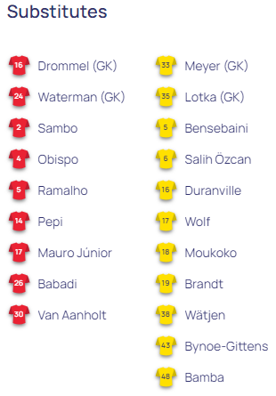 ПСВ: Бенітес, Тезе, Шутен, Боскальї, Дест, Тіллман, Верман, Сайбарі, Бакайоко, Лосано, Де Йонг.