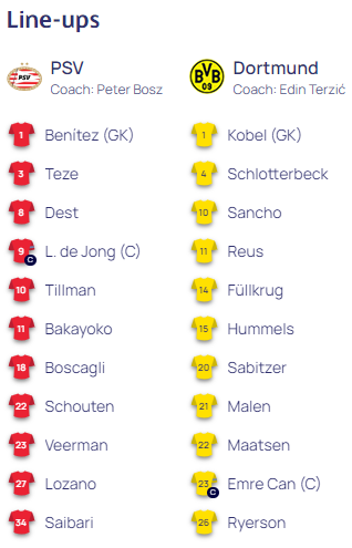 ПСВ – Боруссія Д. Стали відомі стартові склади на матч ЛЧ