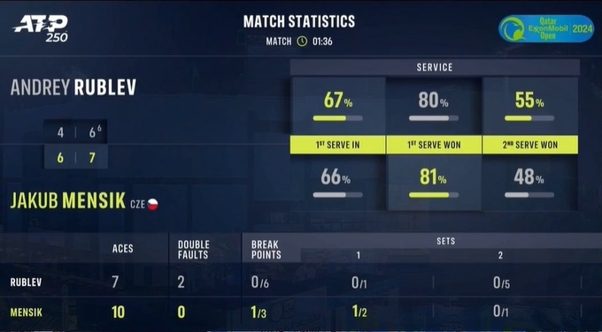 18 yr old and world no.116 Jakub Mensik defeats Rublev 6-4 7-6 to secure top 100 debut and reach Doha semi-finals!#QatarExxonMobilOpen pic.twitter.com/jkUp4NlFqy