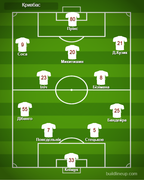 «Кривбас»: Кліщук, Бандейра, Понєдєльнік, Стецьков, Дібанго, Д.Кузик (Задерака, 82), Іліч (Вакулко, 70), Бізімана, Соса (Хомченковський, 70), Микитишин (Татарков, 70), Прінс (Кожушко, 78).