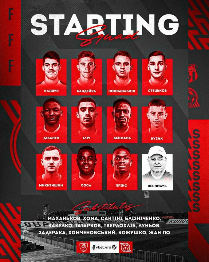 Запасні: Хома, Маханьков, Сантіні, Блізніченко, Твердохліб, Луньов, По.