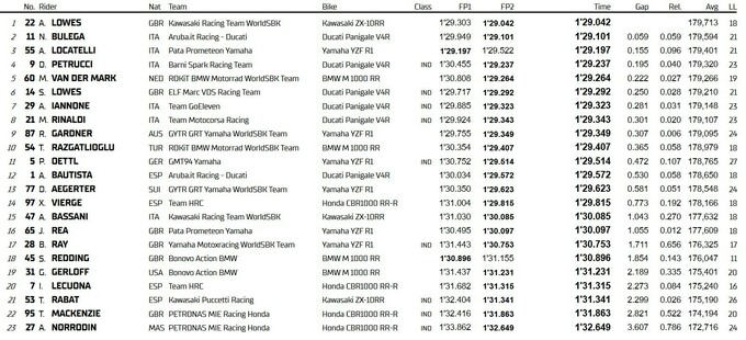 Друга сесія пройшла у звичайному режимі – в ній Алекс Лоус покращив результат Локателлі та встановив новий рекорд кола, 1'29.042, який став найкращим результатом п'ятниці. Другий час також у другій сесії показав Ніколо Булега із Дукаті. Локателлі зрештою замкнув першу трійку.