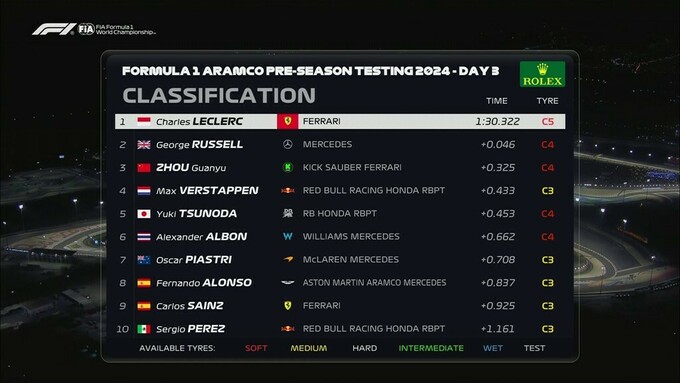Зазначимо, що наприкінці дня хороший результат показав Джордж Расселл на Мерседесі, який опинився між Леклером та Ферстаппеном.