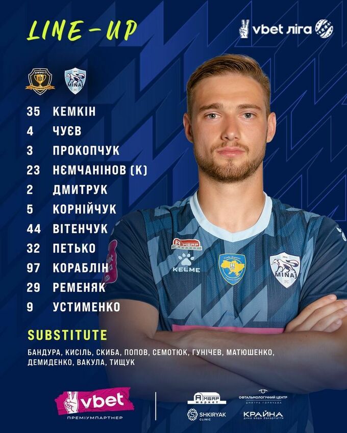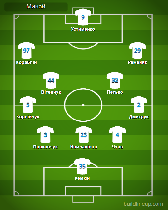 «Минай»: Кемкін – Корнійчук, Прокопчук, Нємчанінов, Чуєв (Скиба, 85), Дмитрук – Кораблін (Семотюк, 74), Петько, Вітенчук, Ременяк (Вакула, 64) – Устименко (Попов, 85).