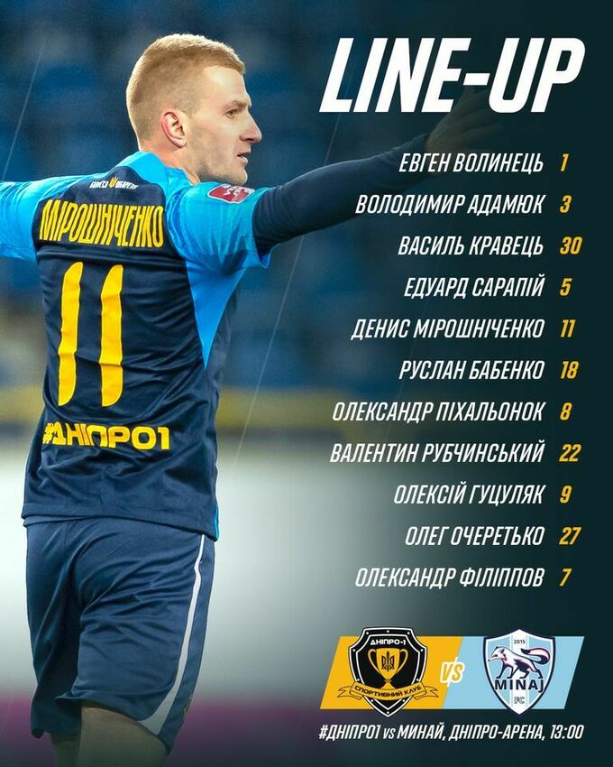 У неділю, 25-го лютого, відбудеться поєдинок 18-го туру Української Прем'єр-ліги, в якому змагатимуться дніпровський «Дніпро-1» і закарпатський «Минай». Матч відбудеться в Дніпрі, на полі стадіону «Дніпро-Арена», початок о 13:00.