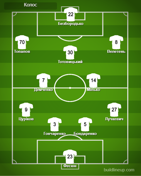 «Колос»: Фесюн, Цуріков, Гончаренко, Бондаренко, Лучкевич, Демченко, Мілько, Велетень (Дієго, 74), Тотовицький, Топалов (Ільїн, 88), Безбородько (Паулаускас, 68).