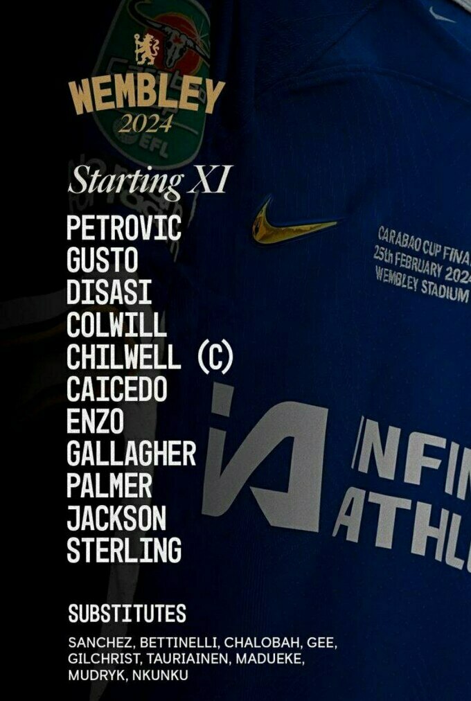 «Челсі»: Петровіч, Гюсто, Дісасі, Колвілл, Чілвелл (Чалоба, 113), Кайседо, Енцо Фернандес, Палмер, Джексон (Мудрик, 90), Стерлінг (Нкунку, 66), Галлахер (Мадуеке, 96).