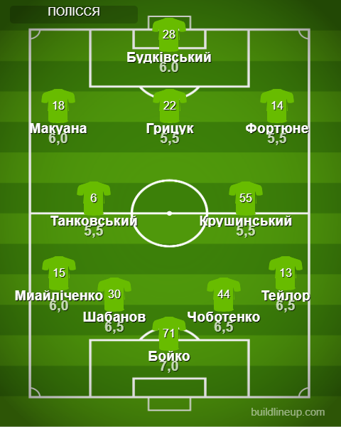 «Полісся»: Бойко - Тейлор, Чоботенко, Шабанов, Михайліченко - Танковський, Крушинський - Фортюне (Назаренко, 70), Грицук (Коста, 61), Макуана (Ндукве, 73) - Будківський (Козак, 61)