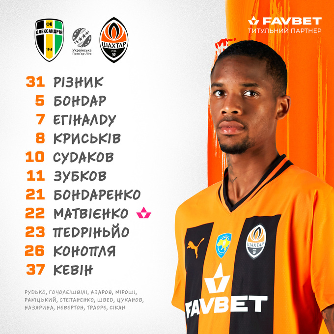 Запасні: Рудько, Гочолеішвілі, Азаров, Цуканов, Міроші, Назарина, Невертон, Ракіцький.