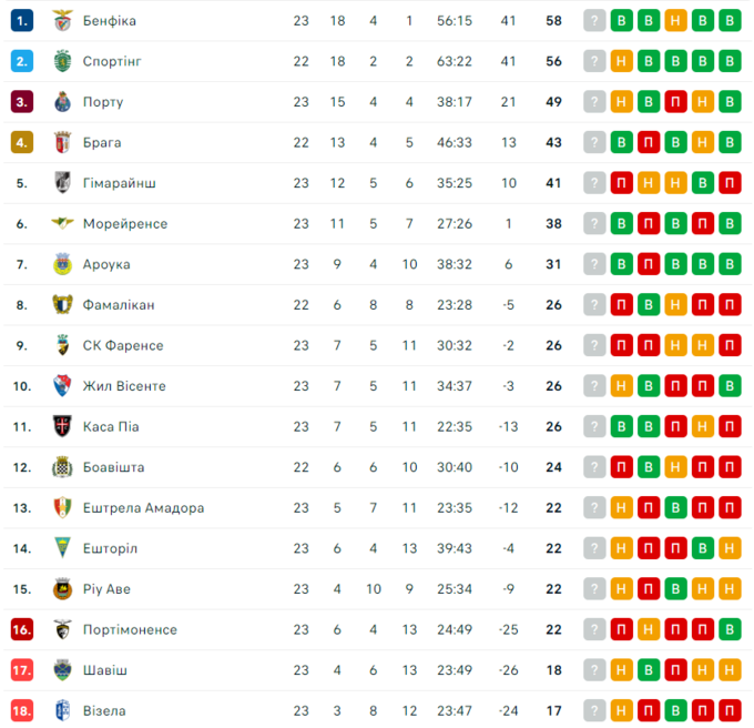 25 лютого відбулися чотири поєдинки чемпіонату Португалії з футболу. «Бенфіка» з Анатолієм Трубіним у складі розібралася з «Портімоненсе». Орест Ледебенко на 90+6 хвилині вирвав для «Візели» дуже важливу нічию.