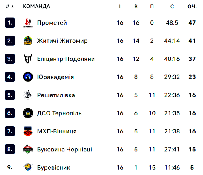 Таким чином, «Прометей» став переможцем першого етапу турніру, не програвши жодного матчу.