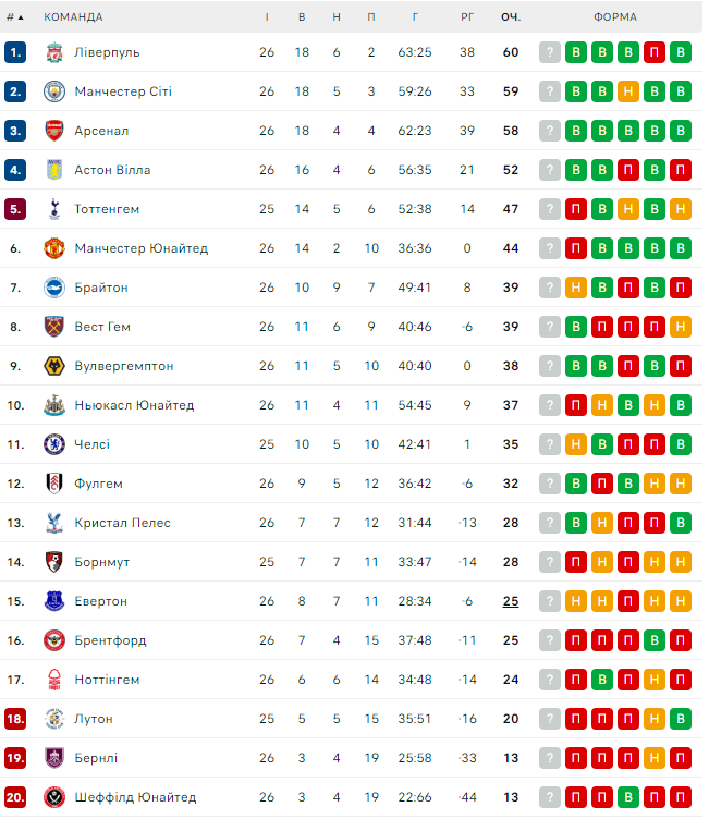Вест Хем піднявся на 8-му позицію (39 очок), Брентфорд йде на 16-му місці (25 очок).