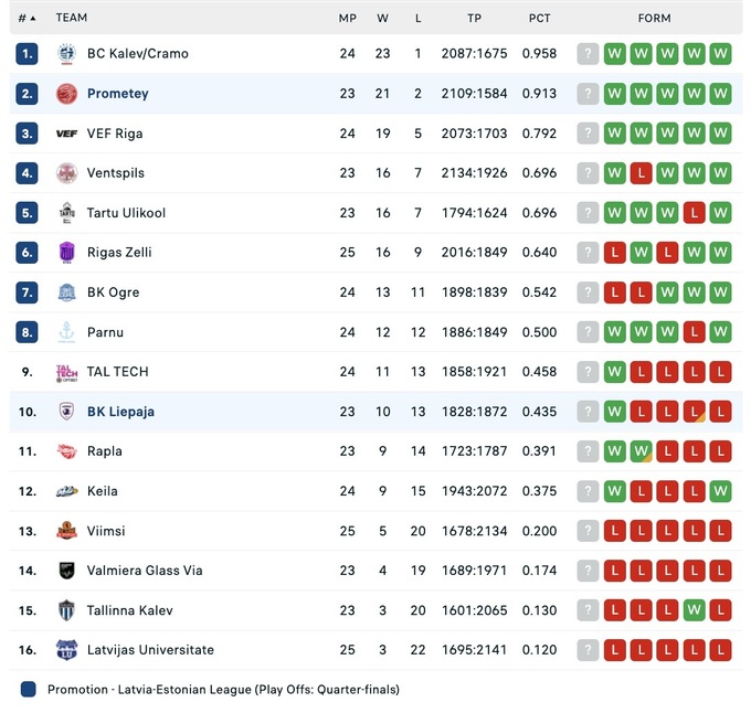 28 лютого о 19:00 пройде матч Латвійсько-Естонської баскетбольної ліги між командами «Лієпая» та «Прометей».