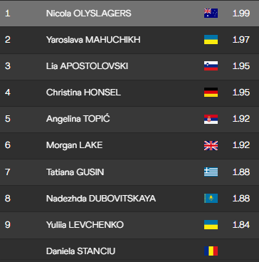 Українка Ярослава Магучіх стала срібною призеркою ЧС, зупинившись на висоті 1.97 м. Чемпіонкою світу стала Нікола Оліслагерс із Австралії, яка із 3-ї спроби взяла 1.99 м.