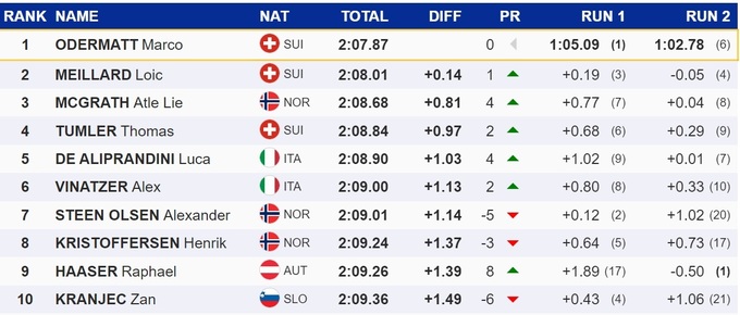 Одерматт всього на 0,14 секунди випередив швейцарця Лоїка Мейяра. Топ-3 замкнув норвежець Атле Лі Макграт.