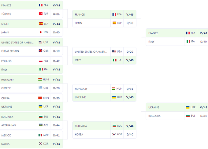 - Франція – Італія – 45:40