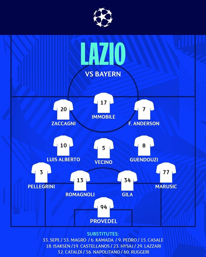 Лаціо: Проведель, Марушич, Романьолі, Хіла, Пеллегріні, Луїс Альберто, Весіно, Гендузі, Феліпе Андерсон, Дзакканьї, Іммобіле.