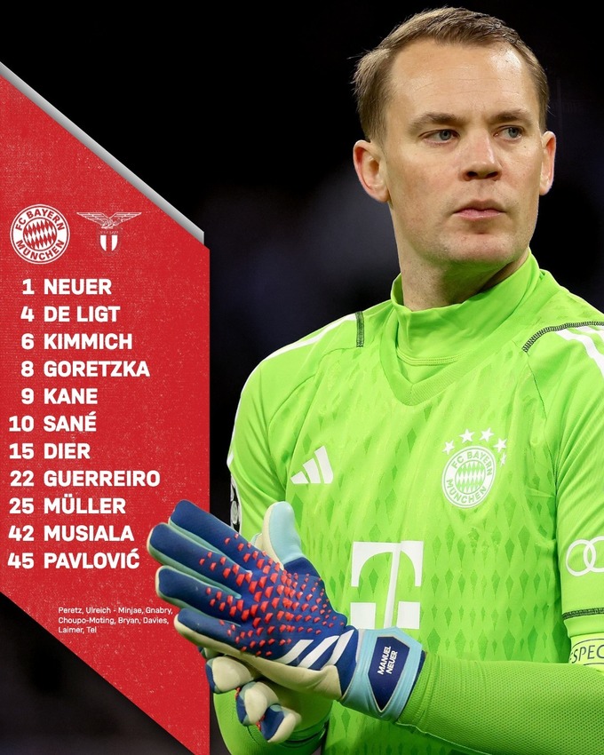 Баварія: Ноєр, Даєр, де Лігт, Геррейру, Павлович, Горетцка, Кімміх, Мюллер, Сане, Мусіала, Кейн.