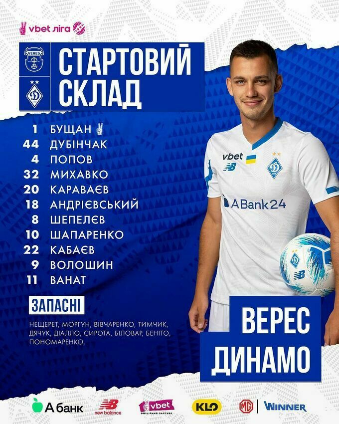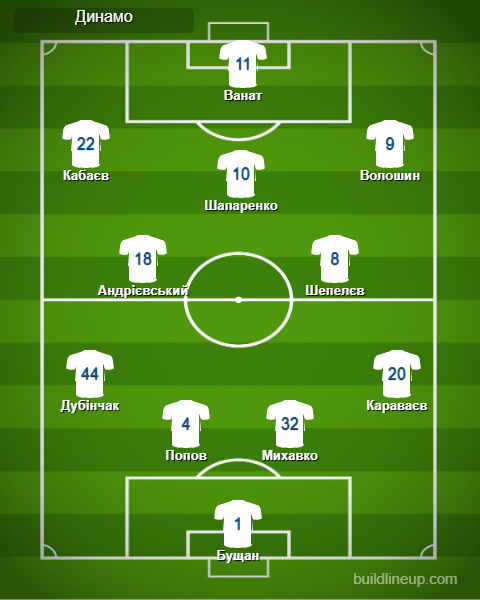 «Динамо»: Бущан, Дубінчак, Попов, Михавко, Караваєв, Шепелєв, Шапаренко (Сирота, 90+1), Андрієвський, Волошин (Дячук, 85), Кабаєв (Беніто, 85), Ванат.