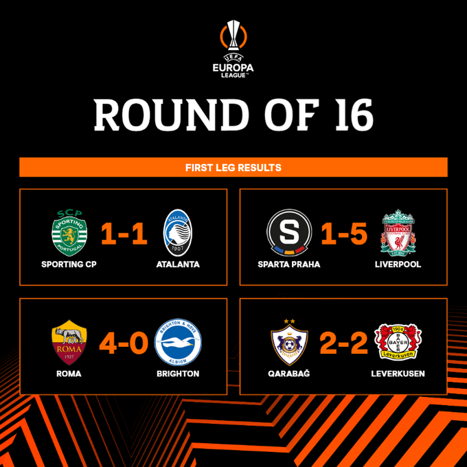«Рома» і «Ліверпуль» здобули розгромні перемоги над «Брайтоном» і «Спартою» відповідно, зробивши дуже вагомі заявки на вихід до чвертьфіналу.