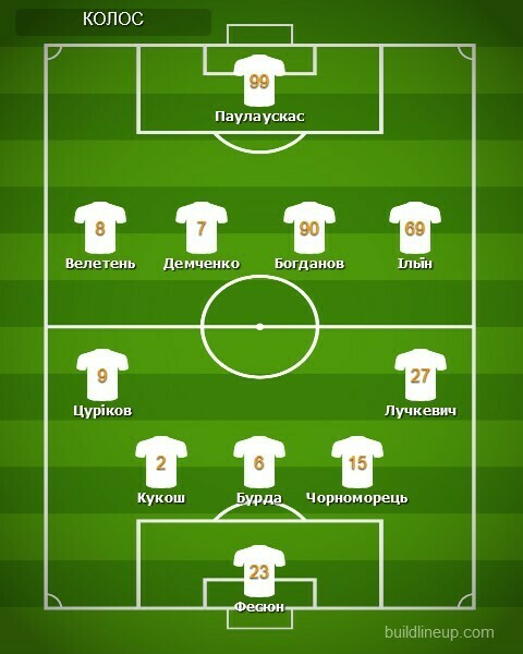 «Колос»: Фесюн, Цуріков, Чорноморець, Бурда, Лучкевич, Богданов (Мілько, 57), Кукош, Демченко (Оріховський, 83), Велетень (Салабай, 46), Ільїн (Рангел, 75), Паулаускас (Безбородько, 74)