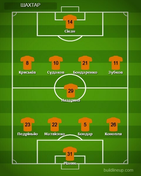 «Шахтер»: Різник, Конопля, Бондар, Матвієнко, Педріньйо (Кевін, 46), Криськів, Назарина (Траоре, 46), Бондаренко, Судаков, Зубков, Сікан (Азаров, 78)