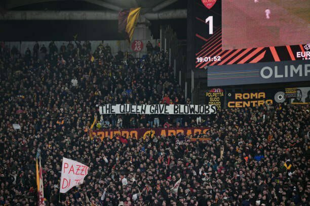 Під час матчу Ліги Європи з «Брайтоном» у четвер увечері ультрас «Роми» вивісили непристойний банер, що містить послання, адресоване покійній королеві.
