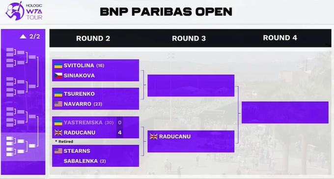 Даяна Ястремська (Україна, 30) – Емма Радукану (Велика Британія) – 0:4 (відмова)