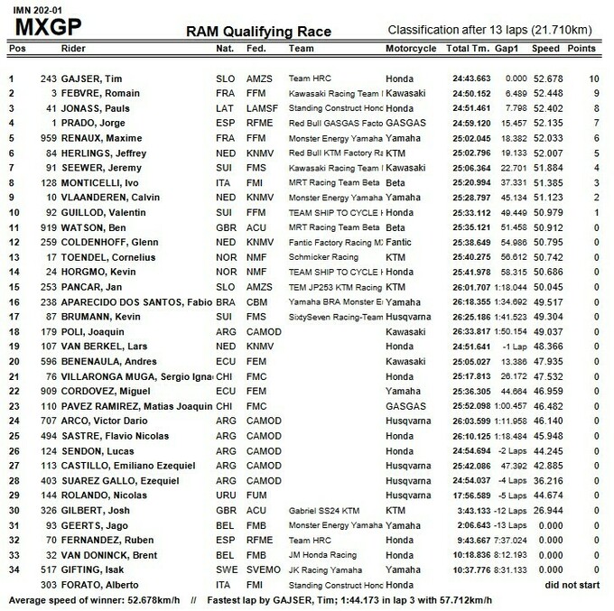 П'ятиразовий чемпіон світу з мотокросу Тім Гайсер на Хонді виграв кваліфікацію першого етапу MXGP 2024, Гран-прі Патагонії-Аргентини у Вілья-Ла-Ангостура. Словенський райдер, який більшу частину минулого сезону пропустив через травму, виграв кваліфікаційний заїзд та випередив француза Ромена Февра із заводської команди Кавасакі.