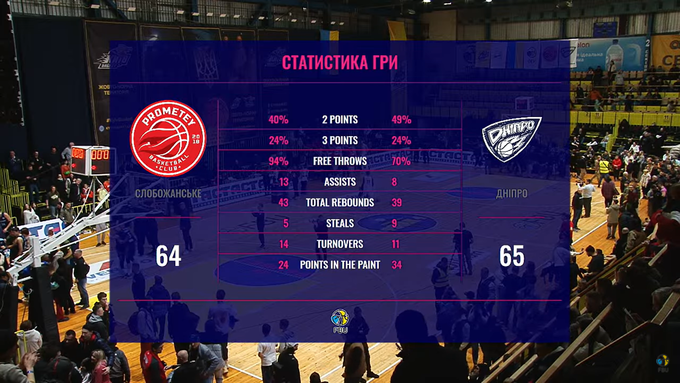 Прометей – Дніпро – 64:65 (8:16, 22:14, 16:27, 18:8)