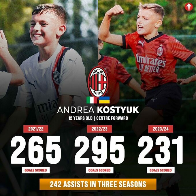 12-річний нападник Андреа Костюк, якого вже охрестили «маленьким Шевченком», демонструє неймовірну результативність у юнацьких змаганнях.